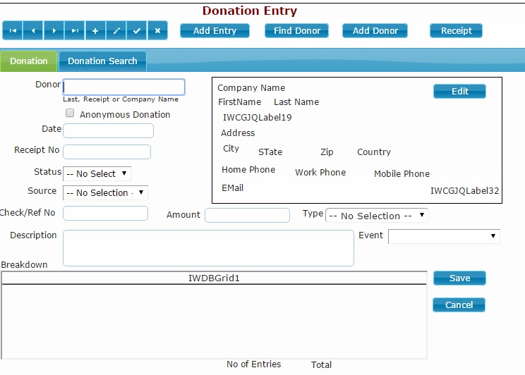 2) Donation Entry